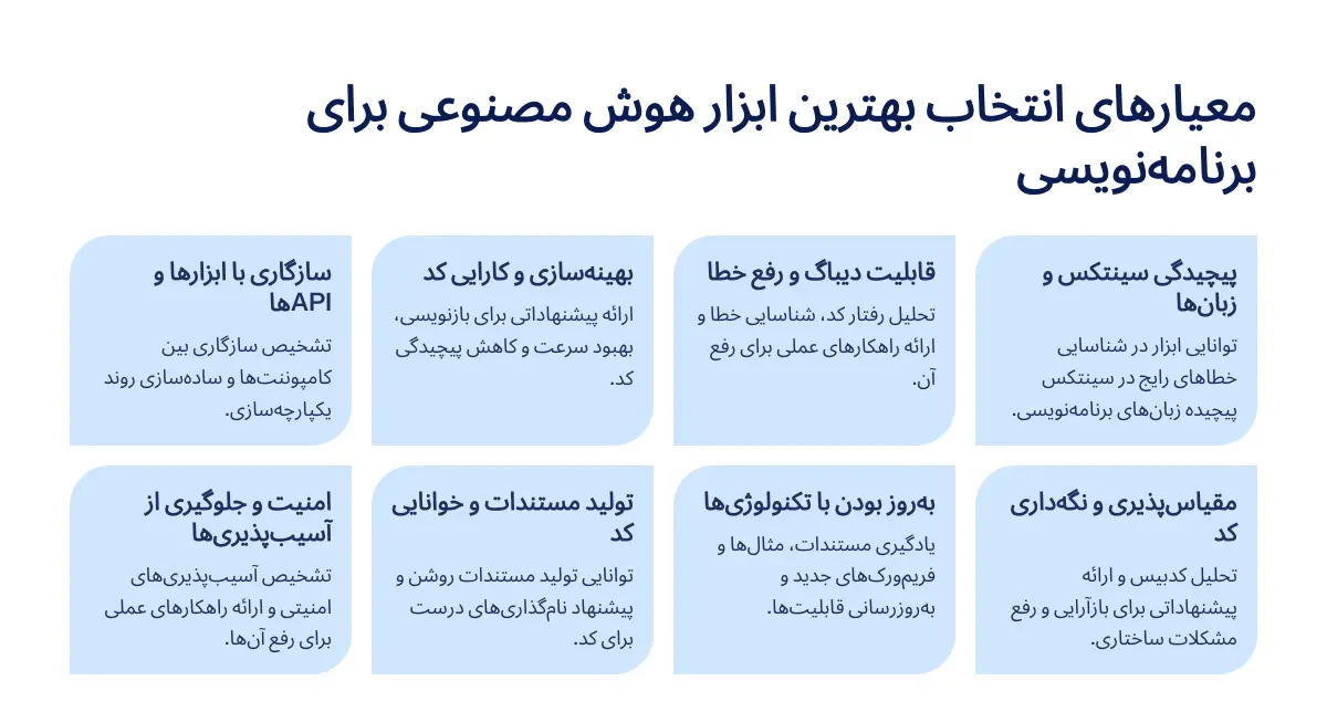 معیارهای انتخاب بهترین ابزار هوش مصنوعی برای برنامه نویسی