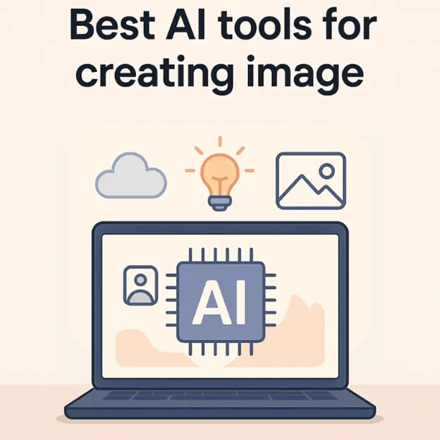 یک تصویر کاور وبلاگی مدرن و مینیمال درباره «بهترین هوش مصنوعی برای ساخت عکس» طراحی کن که ترکیبی از متن و تصویر باشد؛ در مرکز تصویر، یک لپتاپ یا مانیتور دیده شود که روی صفحه آن یک صحنه خلاقانه از ترکیب کلمات و آیکونهای تصویری هوش مصنوعی نمایش داده میشود و در بالای تصویر، با فونت خوانا و واضح، متن فارسی «Best AI tools for creating image» قرار بگیرد؛ رنگبندی ملایم و حرفهای با پسزمینه روشن، نورپردازی نرم و حس یک استودیوی کوچک خلاقیت دیجیتال ایجاد شود تا برای کاور مقاله و پست شبکههای اجتماعی مناسب باشد.