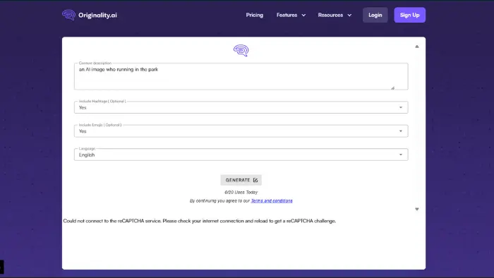کار با Originality بسیار آسان است. کافی است محتوای خود را در کادر اول شرح دهید، پس انتخاب کنید که آیا میخواهید پست شما کپشن یا ایموجی داشته باشد. در آخر زبان مورد نظرتان را انتخاب کنید تا کپشن ساخته شود. البته این ابزار فعلاً از زبان فارسی پشتیبانی نمیکند. ولی میتوانید کپشنهای انگلیسی را که مینویسد، بخوانید و برای نوشتن کپشن ایدههای جذاب بگیرید.