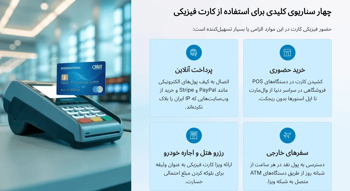 کاربردهای ویزا کارت فیزیکی در سناریوهای واقعی