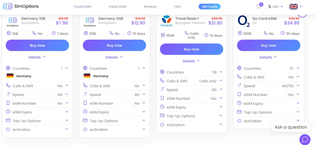 خرید سیمکارت بین المللی از طریق SimOptions گاهی بهصرفهتر از خرید مستقیم از خود اپراتورها تمام میشود. همچنین فرایند خرید سیمکارت بین المللی در این پلتفرم بسیار ساده است.