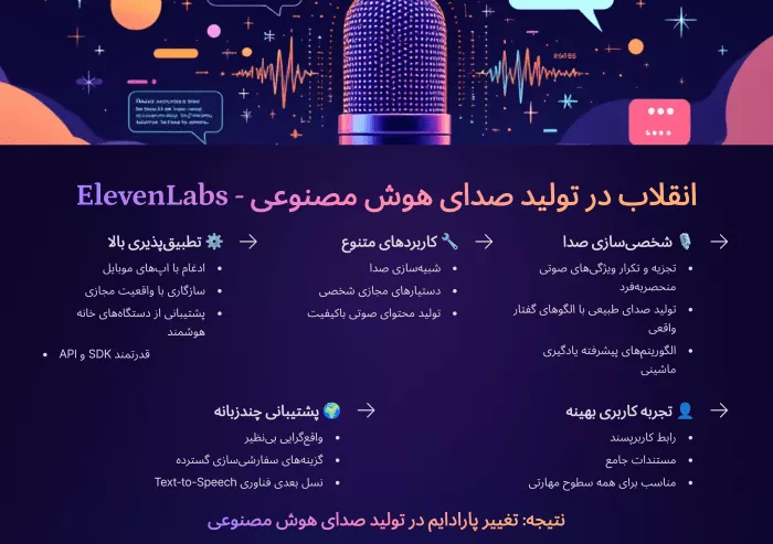 حوزه کاربرد مزیت استفاده از ElevenLabs چرا ضروری است؟