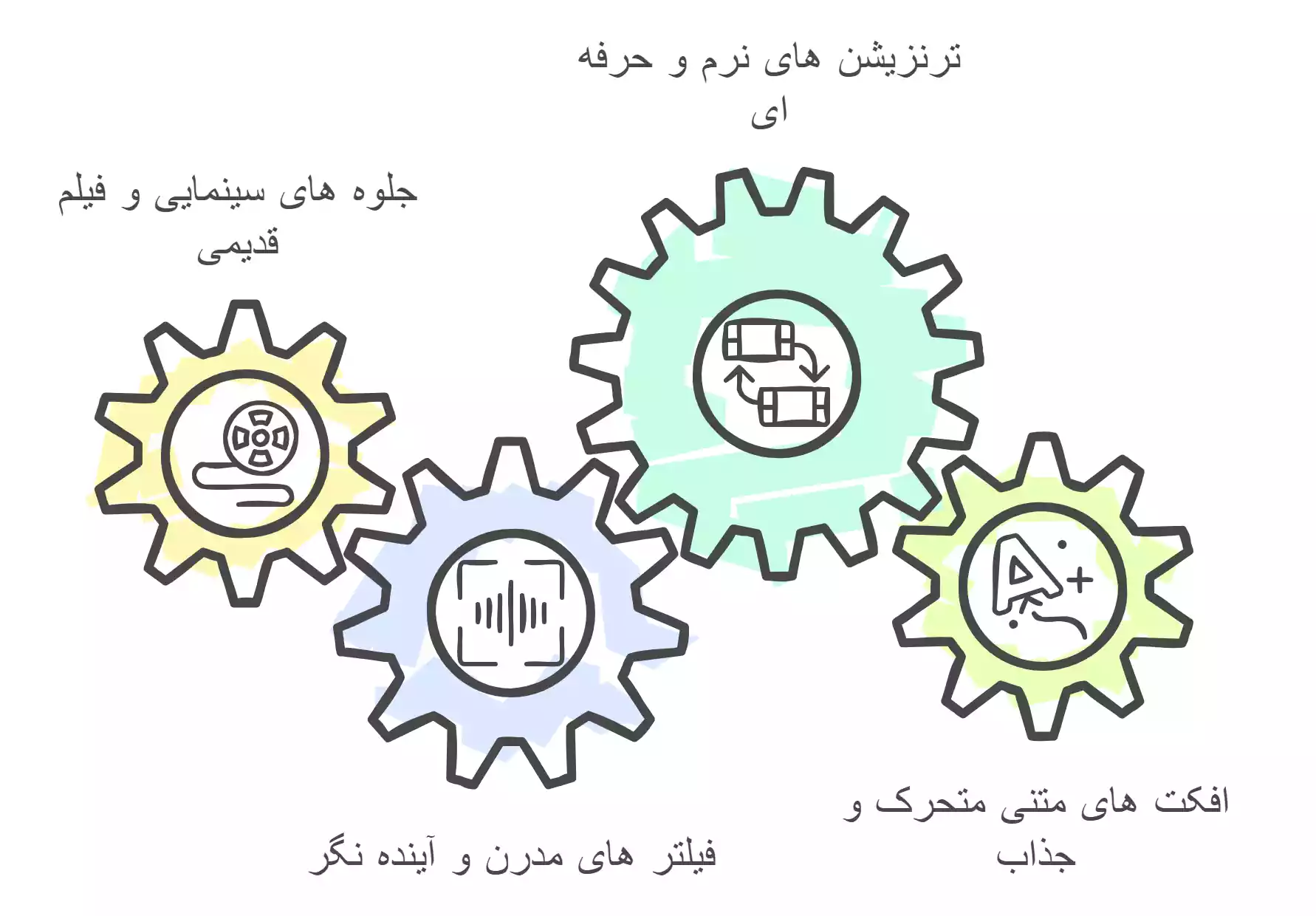 - افکت ها، فیلتر ها و ترنزیشن های متنوع
