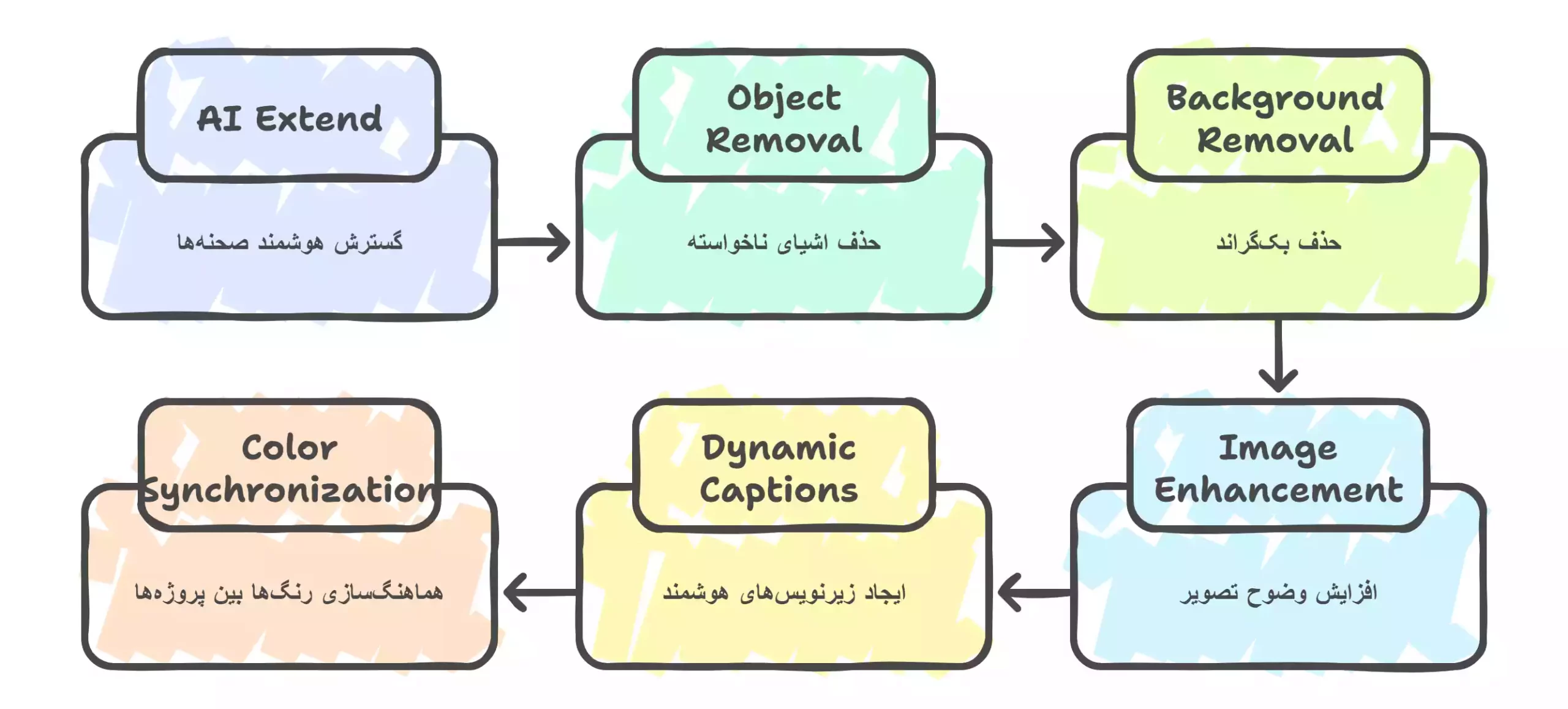 - تنظیم رنگ، تثبیت ویدیو و افکت های متنی