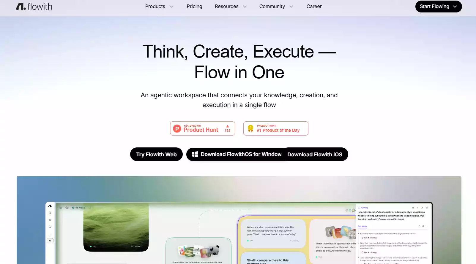 “Flowith is an agentic workspace that connects your knowledge, creation, and execution in a single flow.”