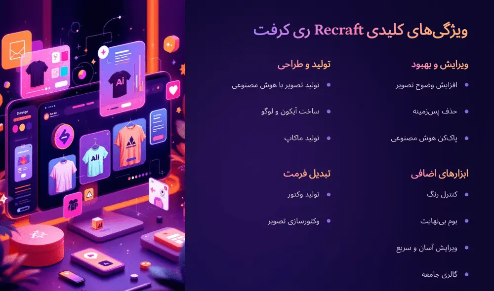 در دنیای طراحی و گرافیک، ابزارهای مبتنی بر هوش مصنوعی تحولی بزرگ ایجاد کردهاند. Recraft یکی از پیشرفتهترین ابزارهای طراحی مبتنی بر هوش مصنوعی است که به کاربران این امکان را میدهد تا تصاویر برداری و پیکسلی را بهصورت خودکار و با کیفیت بالا ایجاد کنند.